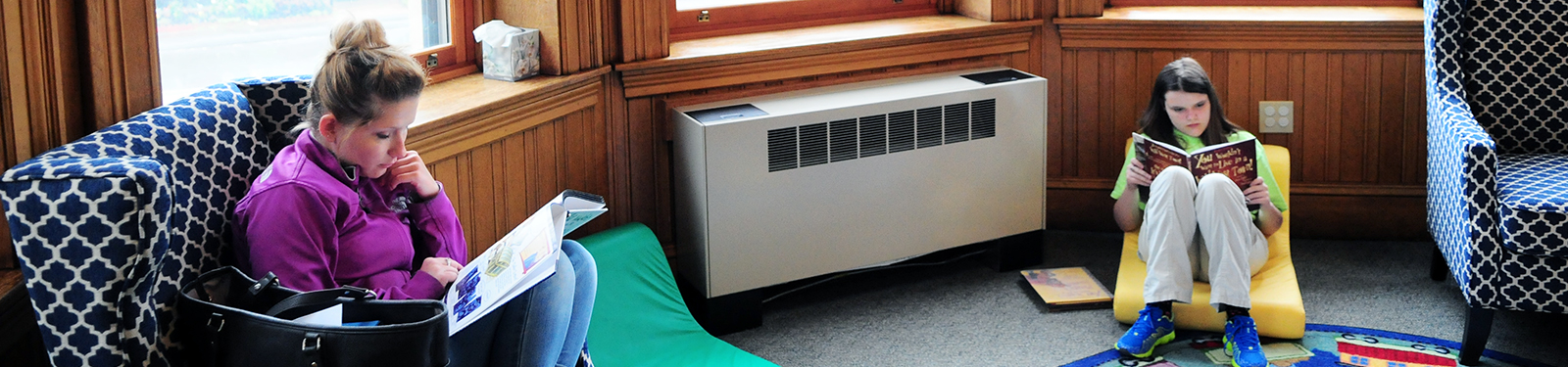 For print resources – our collection is easily accessible in the Locashio Adult Wing and Dick Family Teen Area. Our books are organized by Dewey Decimal, with subject signs above the shelves. We also have access to over six million items via the Minerva consortium collection.
